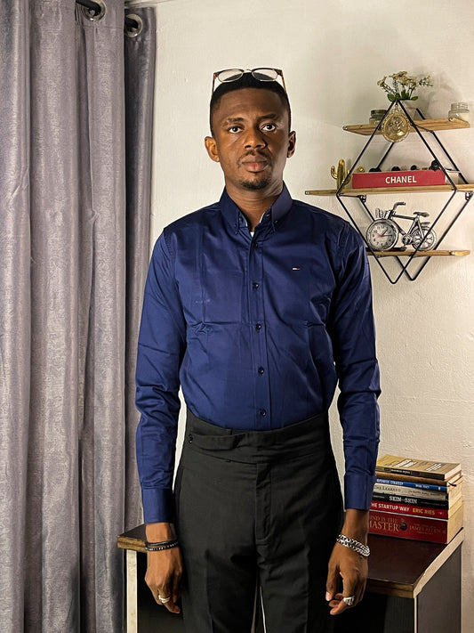 Slim Fit Plain Oxford Navy Shirt - TH030
