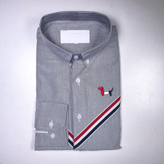 Men's gray long sleeved button-down oxford shirt by T. Browne