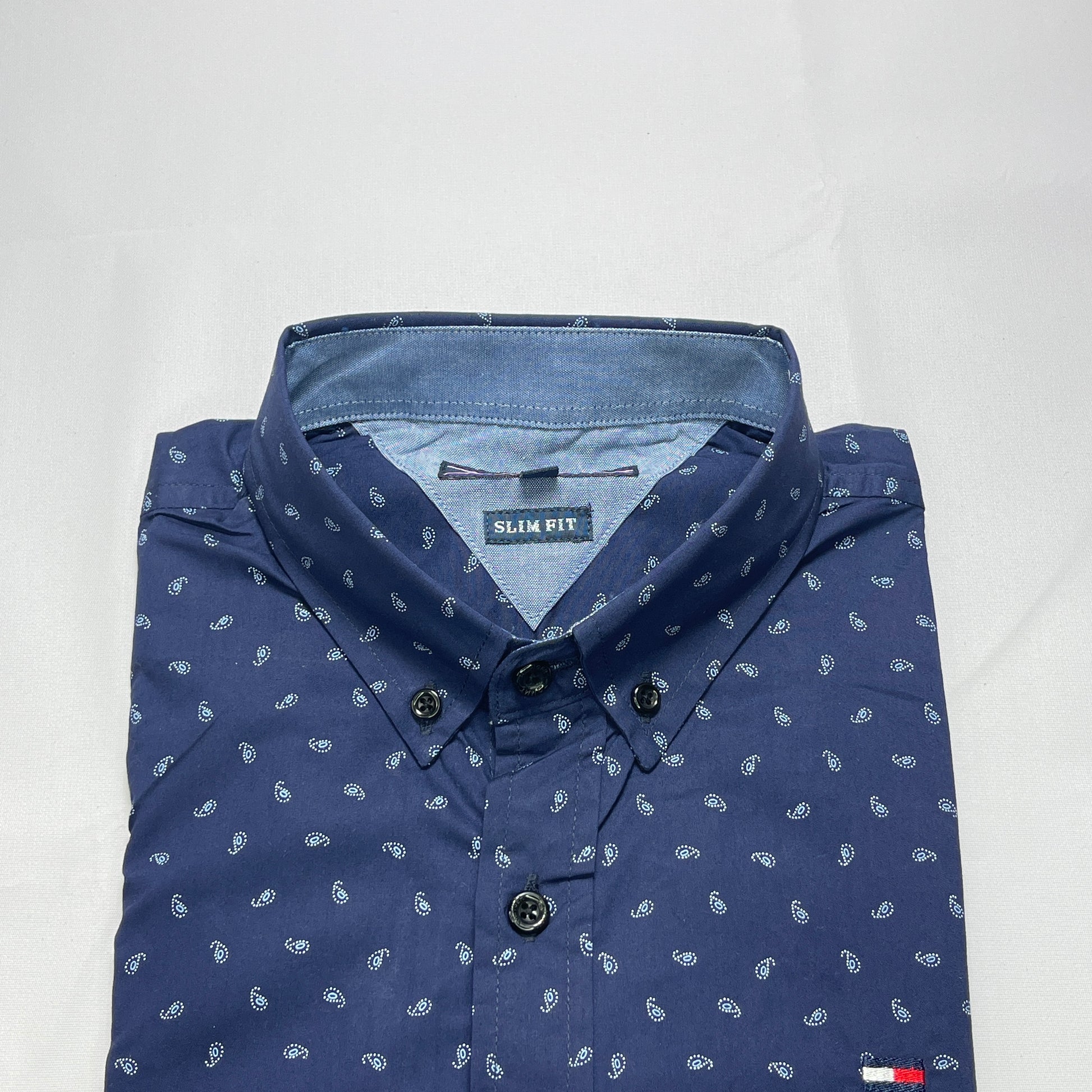 button-down collars, long sleeves with button cuffs, and the iconic Tommy Hilfiger logo,