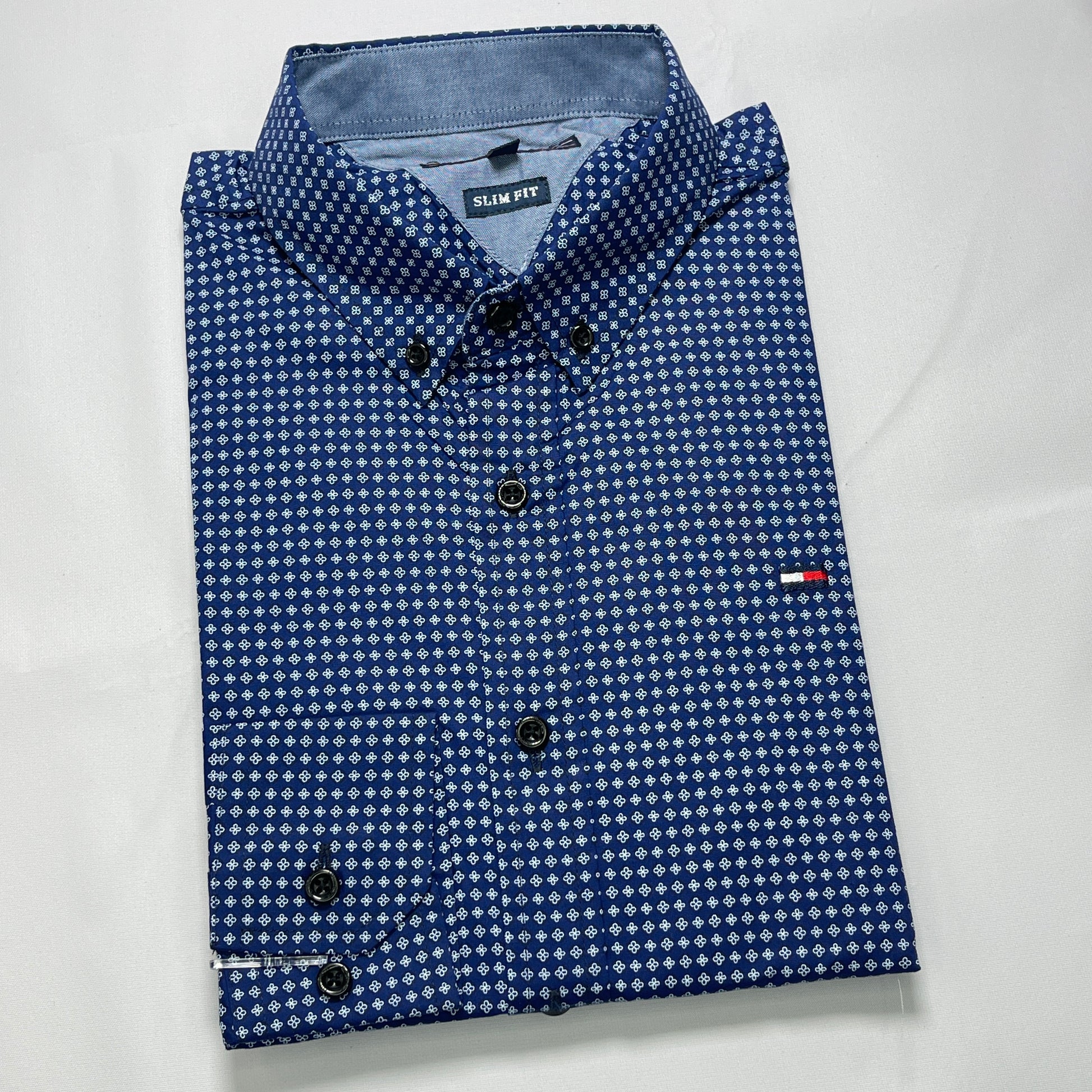 button-down collars, long sleeves with button cuffs, and the iconic Tommy Hilfiger logo,