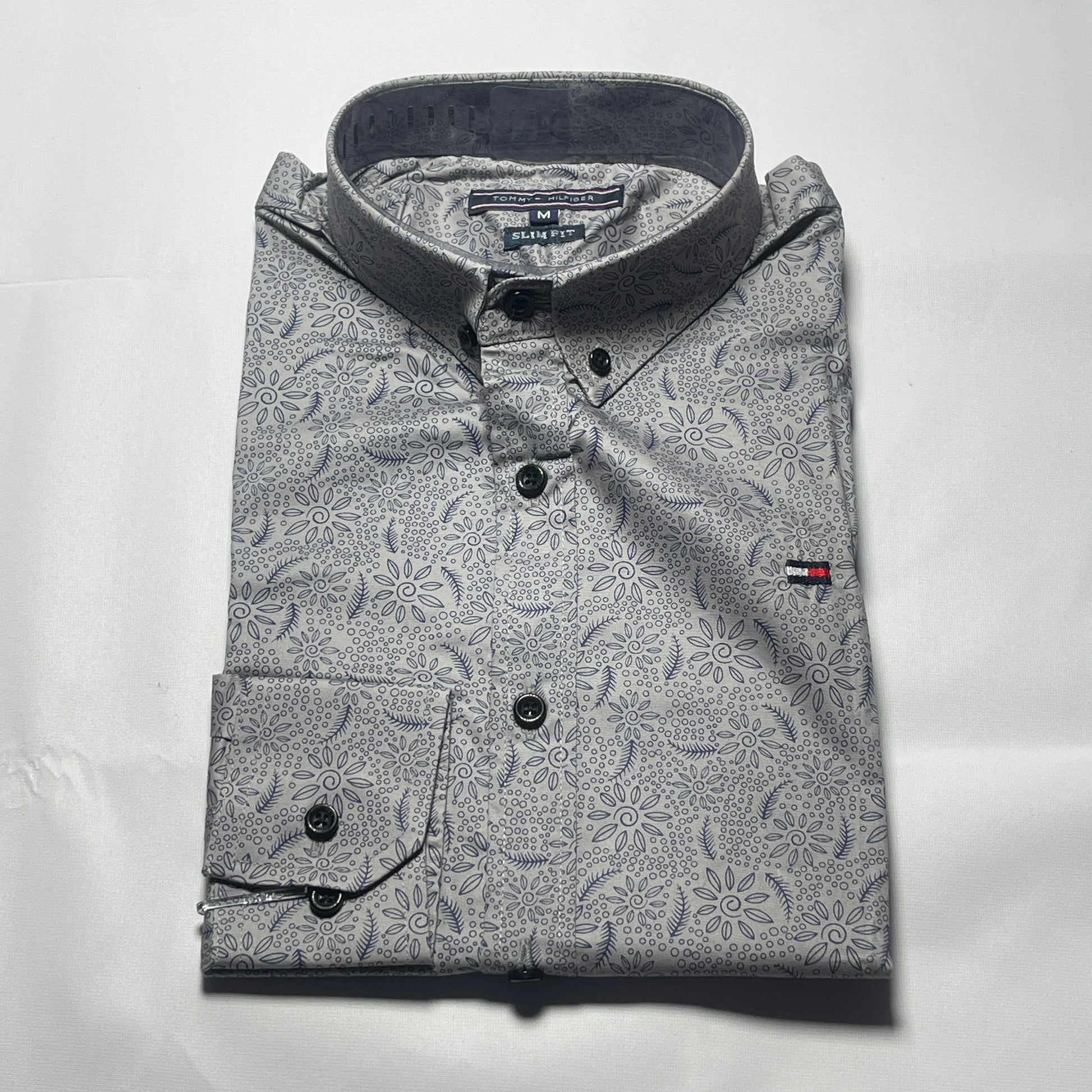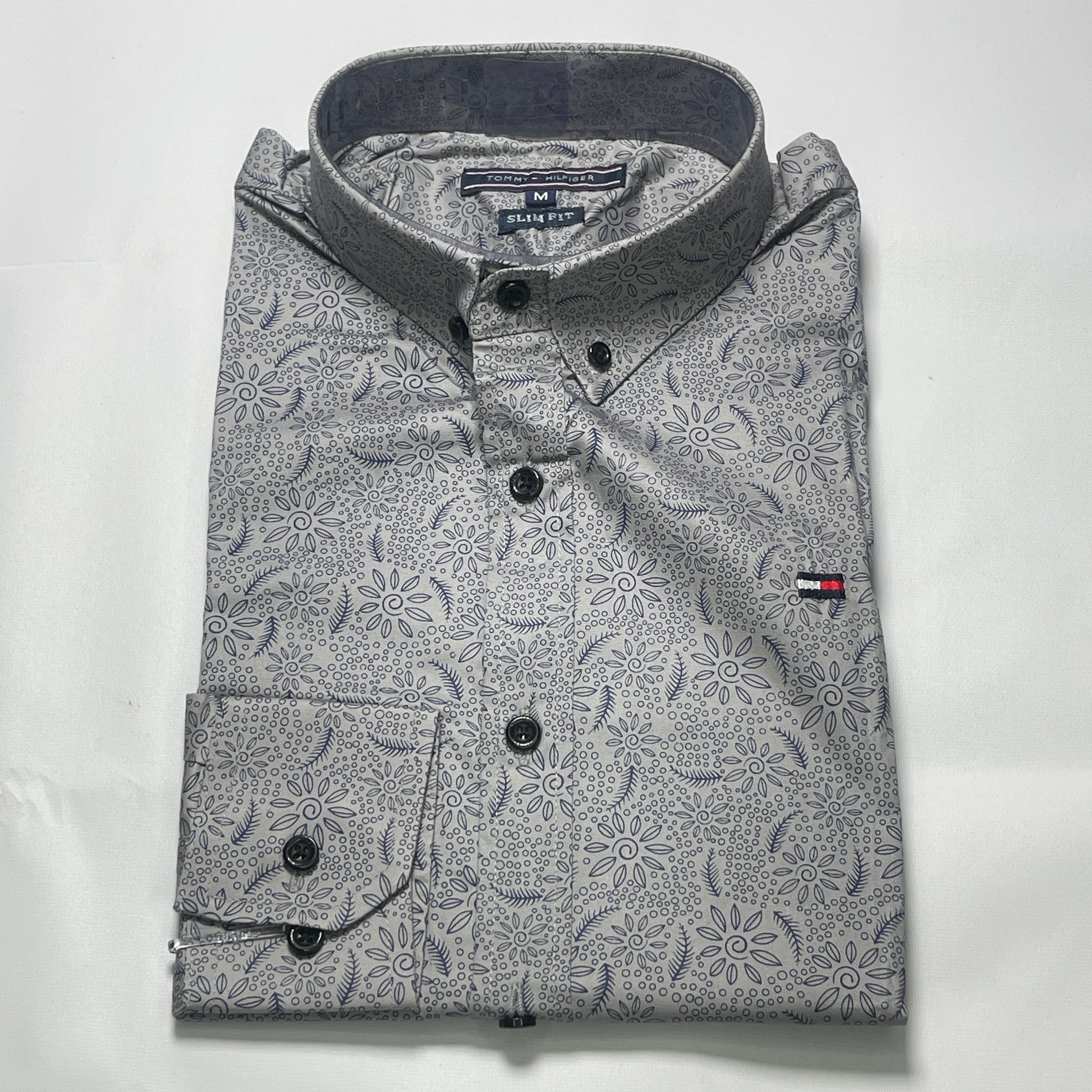 button-down collars, long sleeves with button cuffs, and the iconic Tommy Hilfiger logo,