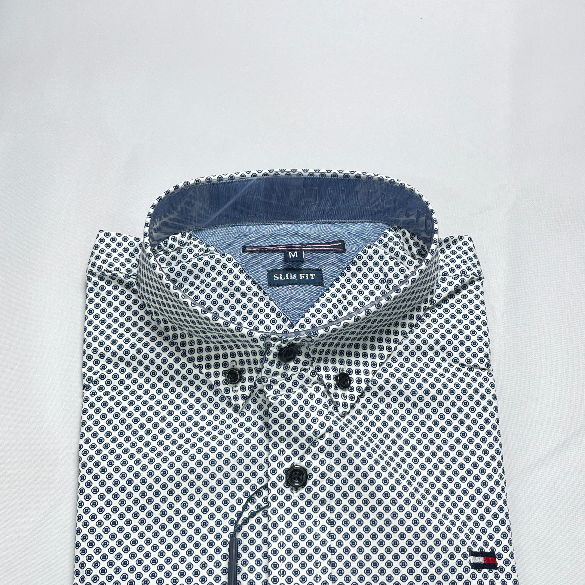 button-down collars, long sleeves with button cuffs, and the iconic Tommy Hilfiger logo,